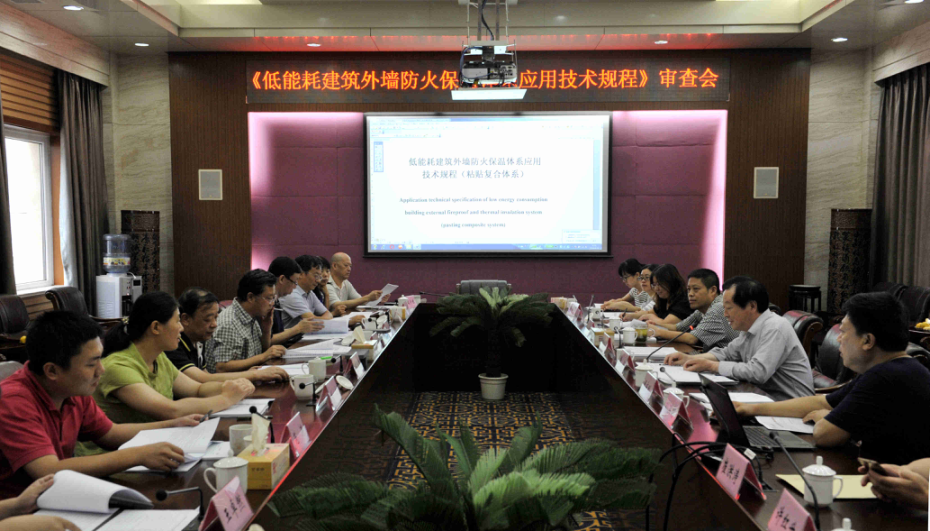 2016年8月20日,山东省住房和城乡建设厅、山东省质量技术监督局在济南组织召开了由山东省建筑科学研究院和山东消防协会主编的山东省工程建设标准《低能耗建筑外墙防火保温体系应用技术规程(隔离式防火体系)》(送审稿)和《低能耗建筑外墙防火保温体系应用技术规程(粘贴复合体系)》(送审稿)专家审查会。会议由省住房和城乡建设厅标准定额站张波科长主持,山东省建筑科学研究院宋义仲院长代表编制单位致辞。技术规程主、参编单位编制组成员约30人参加了会议。