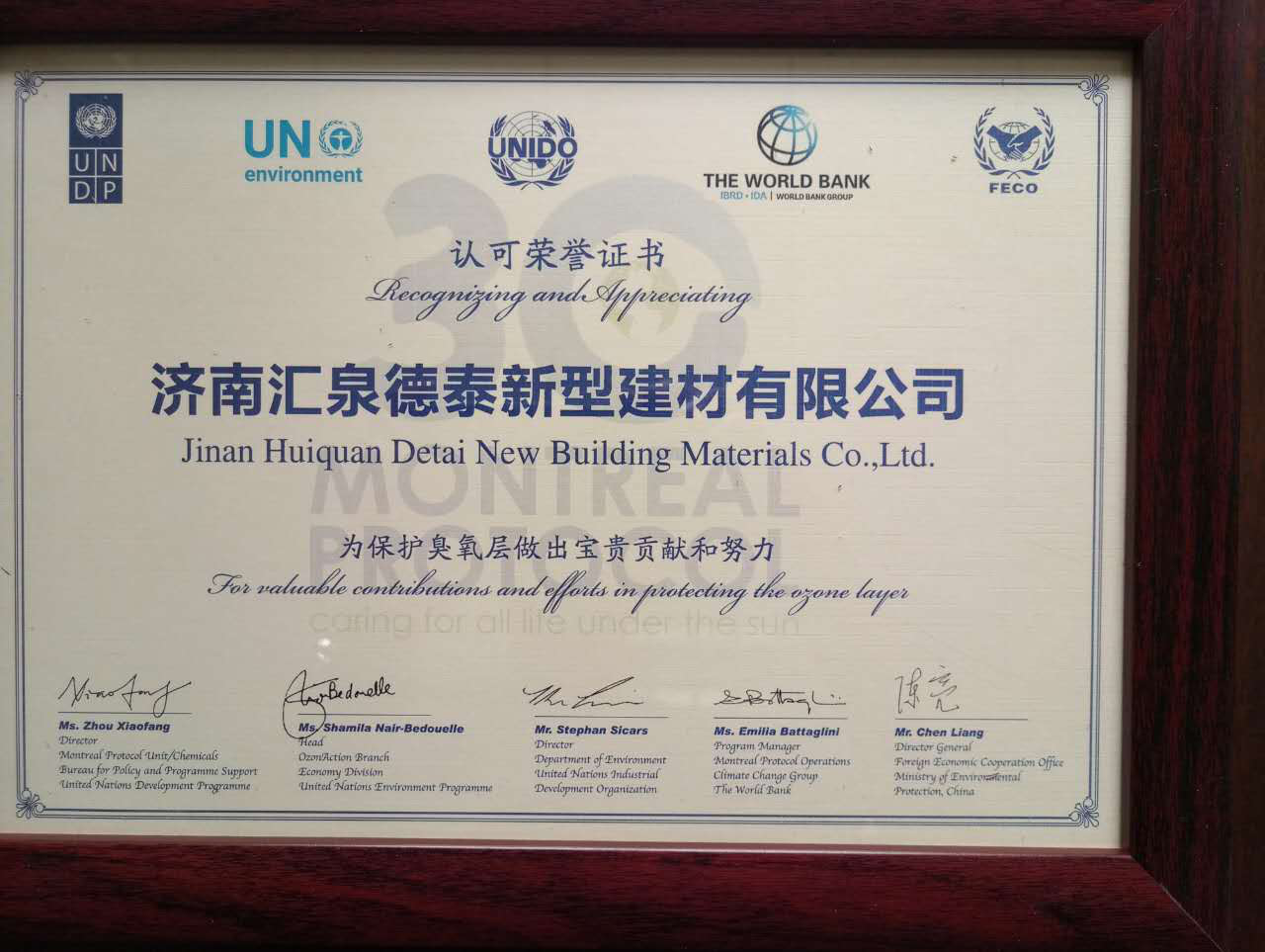 济南汇泉德泰新型建材有限公司获得认可荣誉证书。