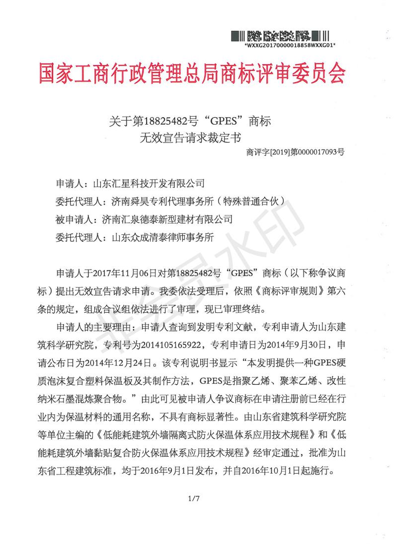 国家工商行政管理总局商标评审委员会关于第18825482号“GPES”商标无效宣告请求裁定书